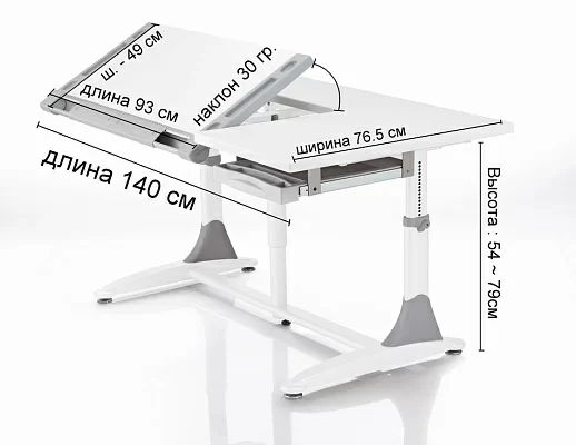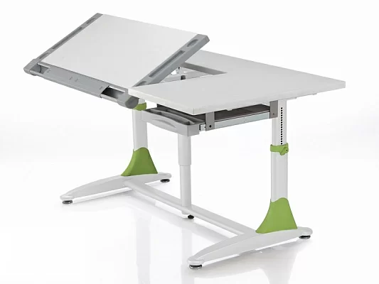 Организация рабочего места с максимальным комфортом – вот основная задача, которую выполняет King Desk. Чем бы Вы не занимались – письмом, чтением или рисованием, рабочая поверхность стола всегда располагается в самом подходящем для этого положении.Столешница детской парты King изготовлена из экологически чистого МДФ и отвечает стандарту Е0. Все материалы конструкции стола не содержат вредных веществ.
