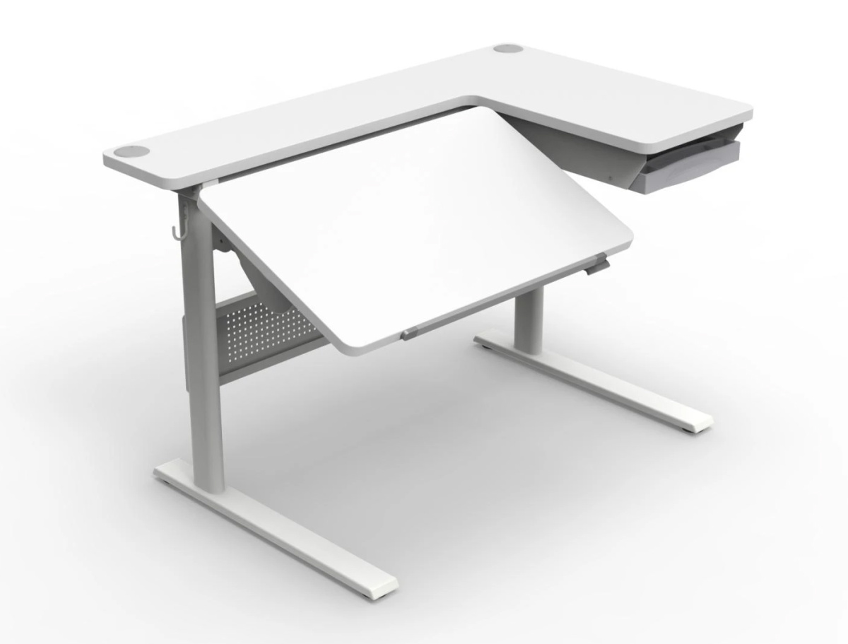Для регулировки высоты стола используется высокотехнологичный запатентованный механизм. За одну секунду вы можете настроить его от 58 до 91 см, что подходит как для маленьких детей, так и для взрослого человека. Ребенок может заниматься за этим столом даже стоя.
