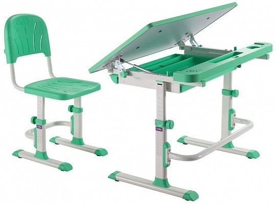 Очень важно, чтобы ребенок правильно сидел за столом при выполнении домашнего задания. DISA GREEN предназначен для обеспечения более комфортной среды обучения. Стол и стул могут быть легко отрегулированы по высоте, что позволяет оптимально адаптировать его под соответствующий рост ребенка. Поверхность учебного стола можно наклонять до 40° для удобного письма, чтения и рисования.