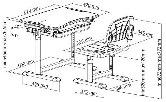 Поверхность учебного стола можно наклонять до 40 ° для удобного письма, чтения и рисования.