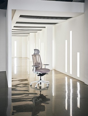 Спинка кресла снабжена особым поясничным упором, разработанным таким образом, чтобы пользователь мог плавно перемещать его даже сидя в кресле.