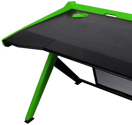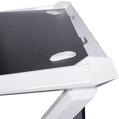 Рабочая поверхность столов DXRacer имеет угол наклона 10 градусов. Его достаточно, чтобы обеспечить наибольший комфорт при длительной игре и расслабить руки. При этом клавиатура, мышка и прочая периферия прочно стоит на поверхности и остается неподвижной. Кроме того, на краю столешницы в местах касания предплечьями сделан специальный скос. В задней части столешницы предусмотрены вырезы, которые позволят избежать хаоса среди многочисленных проводов и уложить их максимально аккуратно. А наличие небольших бортиков по краям стола дает возможность класть на стол различные мелкие предметы, не опасаясь случайно сбросить их в напряженные игровые моменты.