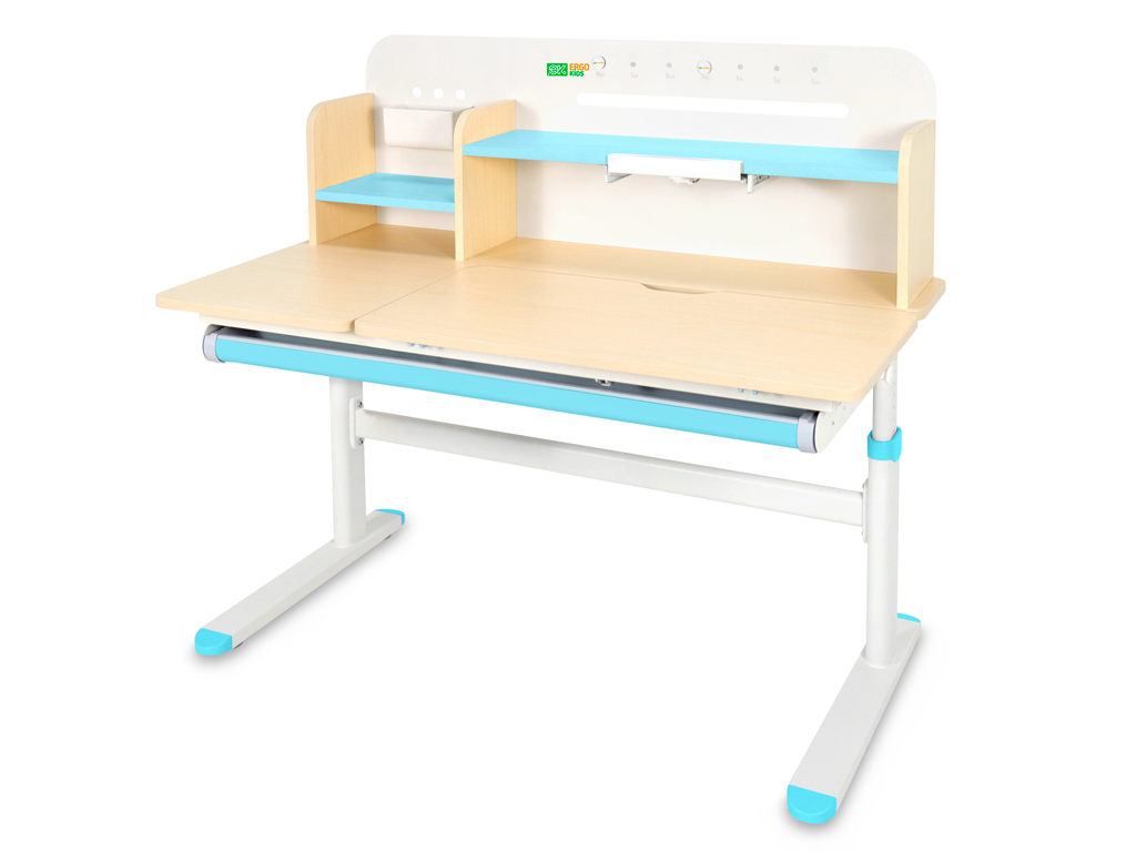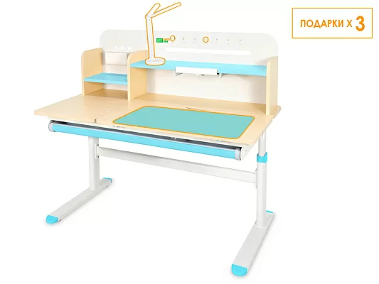 Регулировка высоты столешницы 52-76 см. Высота стола регулируется с помощью механической ручки, что дает возможность легко настроить парту под рост ребенка. Стол с трансформирующейся столешницей, которая изменяет угол наклона до 50 градусов с помощью механизма газлифт. Вы можете установить оптимальный угол наклона столешницы для чтения, письма или рисования.