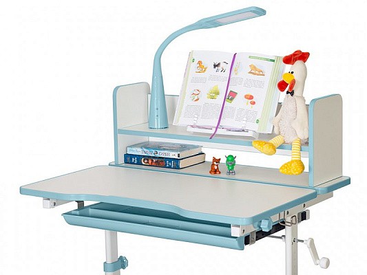 Под столешницей расположен вместительный органайзер для тетрадей и канцелярии, созданный из безопасного и прочного ABS-пластика.