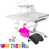 «ФанДеск» могут регулировать высоту парты под рост ребенка, а столешница может изменять угол наклона. Каждую модель можно оборудовать дополнительными аксессуарами. Парта «FunDesk» имеет множество ящиков для хранения канцелярских принадлежностей и тетрадей.