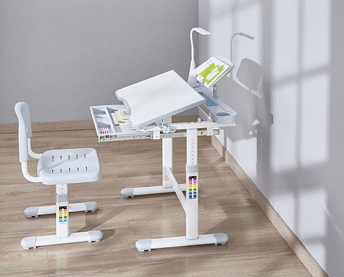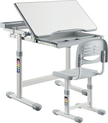Стол и стул могут быть легко отрегулированы по высоте, что позволяет оптимально адаптировать его под соответствующий рост ребенка.