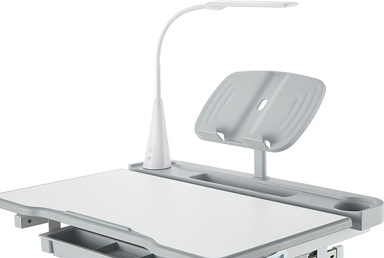 Поверхность учебного стола можно наклонять до 40 °. В ножки парты встроена система корректировки неровной поверхности.