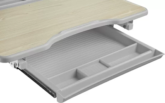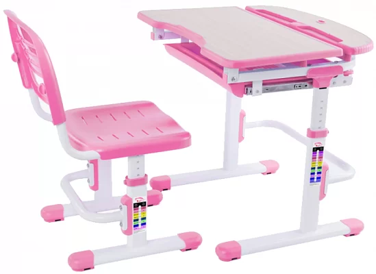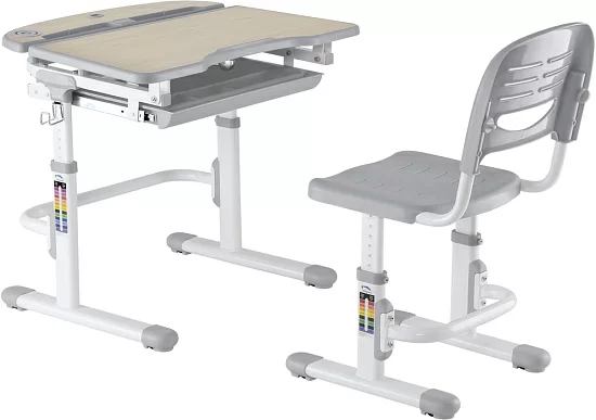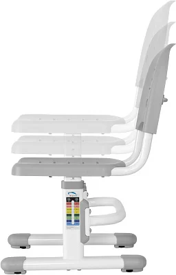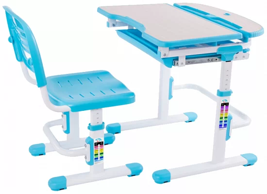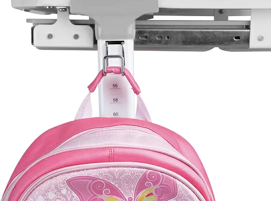 В комплекте предусмотрено всё до мелочей: от оригинальных решений в дизайне столешницы, до ящика для школьных принадлежностей и крючка для рюкзака. Не забыли производители и о взрослых – для их удобства на ножках парты и стула расположены удобные, интуитивно понятные таблицы, облегчающие процесс регулировки. Удобство всегда начинается с мелочей.