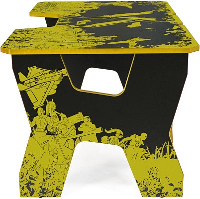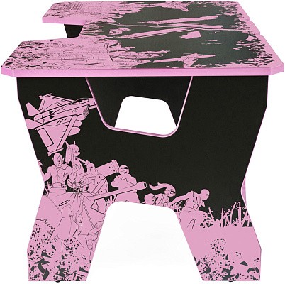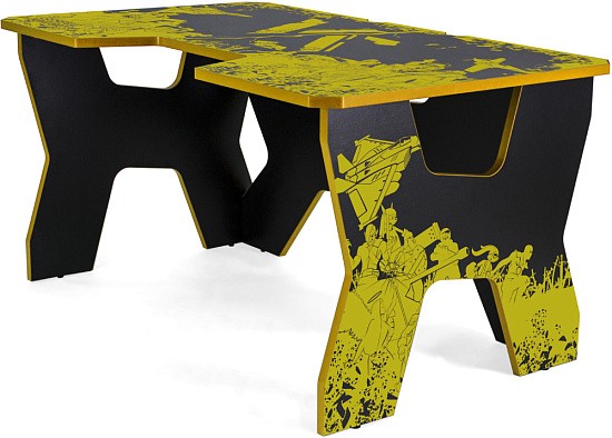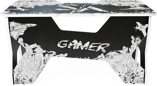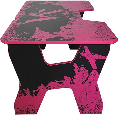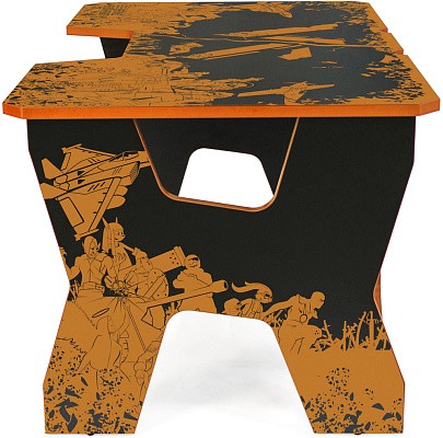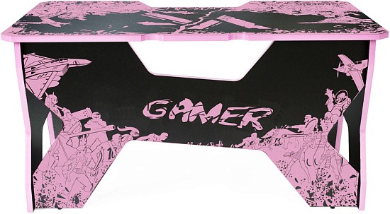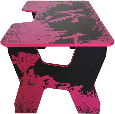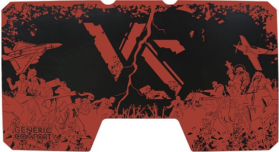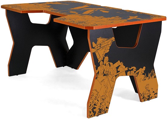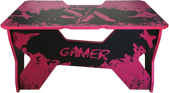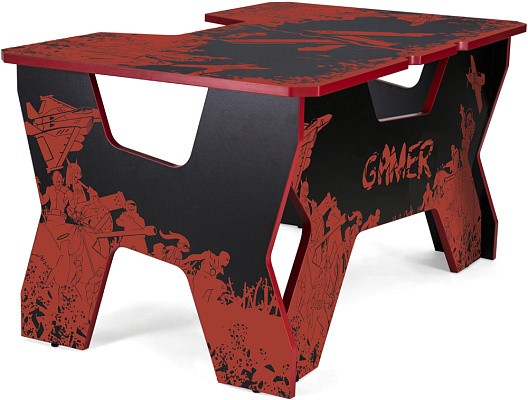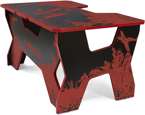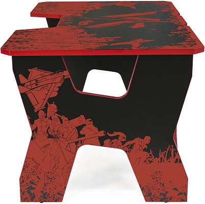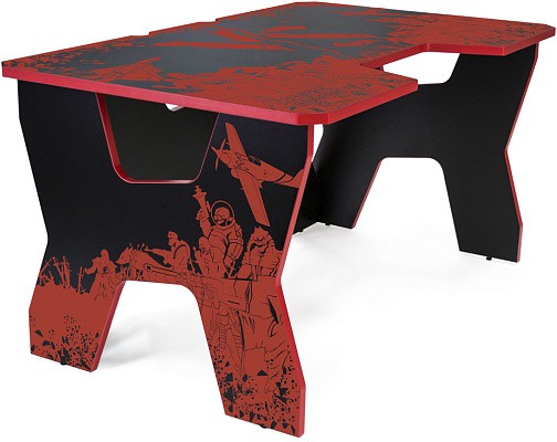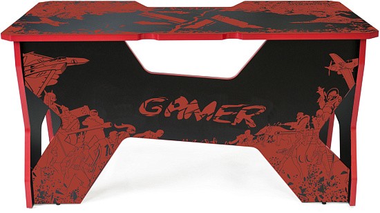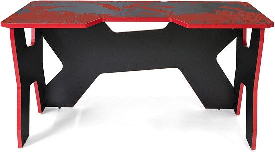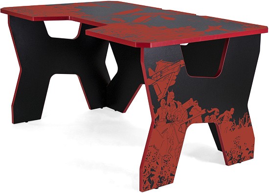 Generic Comfort Gamer2/VS - стильный компьютерный стол с необычным дизайном. Кромки стола выполнены в красном цвете, а на черную основу методом ультрафиолетовой печати нанесен красный рисунок. За счет такой технологии, изображение получается ярким, насыщенным и при этом долговечным, с высокой стойкостью к истиранию. Рисунок наносится дополнительным слоем, вследствие чего выступает на 0,2 мм над поверхностью. Поэтому, на данном столе рекомендуется использовать коврик для мышки.