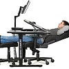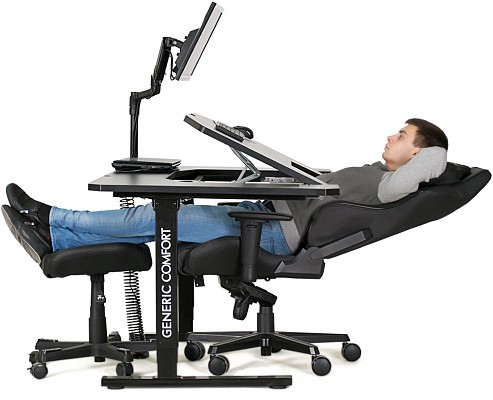 Generic Comfort серии Uno – эргономичные столы, обеспечивающие большую вариативность поз при работе за компьютером. Основная идея при их создании - максимальный комфорт работника на протяжении всего рабочего дня. Столы серии Uno обладают быстрой и плавной регулировкой столешницы по высоте. Она происходит при помощи электроприводов, управляемых пультом в передней части столешницы. Вы можете подобрать оптимальную высоту стола не отвлекаясь от работы. В передней части столешницы присутствует специальная ниша в форме трапеции, ширина которой достаточна, чтобы придвинуться к столу вплотную вместе с креслом. Кроме того столешница оснащена регулируемым наклонным сегментом, что является главной особенностью столов данной серии. Его угол можно подобрать так, что вы сможете работать за столом практически лежа. При этом руки всегда лежат на поверхности наклонного сегмента и остаются расслабленными. Все эти опции позволяют работать за столом с максимальным комфортом сидя, стоя, полулежа, или в движении на беговой дорожке. В сочетании с кронштейном для монитора и игровым компьютерным креслом, стол GC Uno - это полноценная рабочая станция, аналогов которой по соотношению цены, качества и функционала не существует.