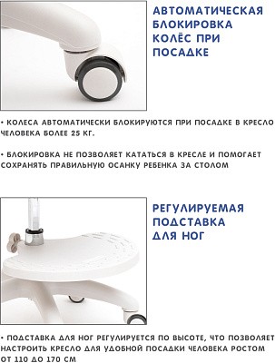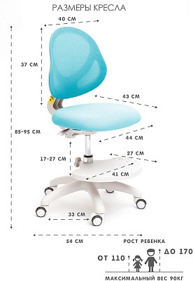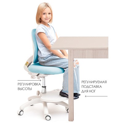 Детское кресло Holto-36 для детей от 3 лет и до подросткового возраста. Подходит для роста от 110 до 170 см. Можно использовать как с растущей партой, так и с обычной. Изменяя глубину спинки и высоту сидения, Вы подберете наиболее комфортное положение для ребенка. Колеса имеют функцию стоп-вращения при посадке в кресло человека свыше 25 кг. Малыш не будет отвлекаться от уроков, катаясь на кресле. Кресло имеет регулируемую подставку для ног, которую можно снять при необходимости.