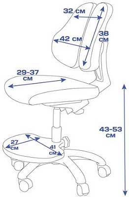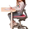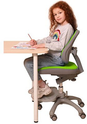 Можно использовать как с растущей партой, так и с обычной. Изменяя глубину спинки и высоту сидения, Вы подберете наиболее комфортное положение для ребенка. Спинка состоит из 2 частей, а колеса имеют функцию стоп-вращения при посадке в кресло человека свыше 25 кг. Малыш не будет отвлекаться от уроков, катаясь на кресле. Двухцветный дизайн обивки прекрасно будет смотреться в Вашем интерьере. Регулировка высоты кресла за счет подъемного газ-лифта.