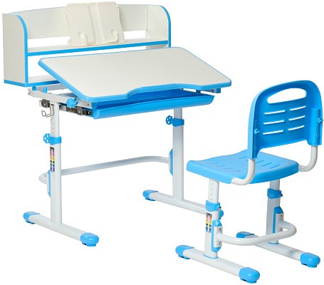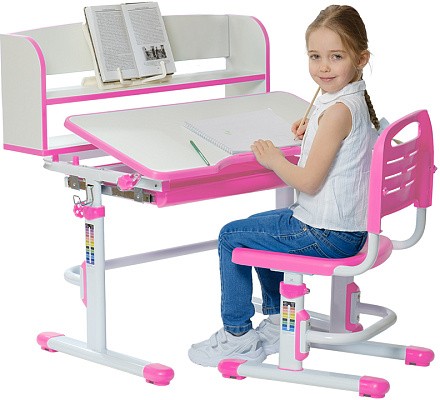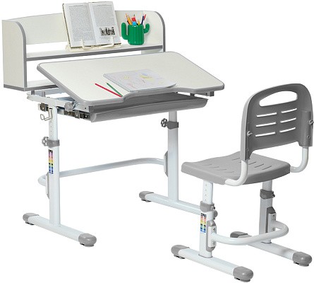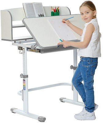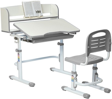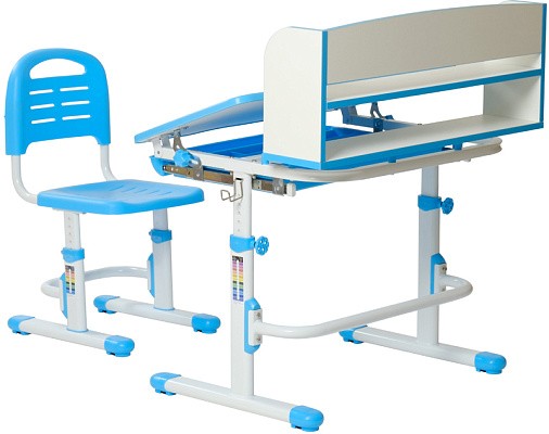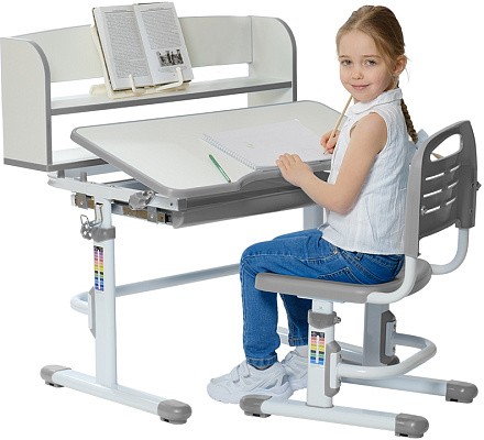 Комплект растущей детской мебели Holto-26: парта с полкой-надстройкой и регулируемой подставкой для книг, куда ребенок может поставить книгу и другие мелочи, растущий стул. Комплект обеспечит ребенку хорошую правильную осанку на начальную школу и дошкольную подготовку. Наклон столешницы изменяется от 0 до 50 градусов. Парту возможно превратить в мольберт, что позволит ребенку рисовать в положении стоя. Ограничительный бортик не даст бумаги упасть. Стол оснащен крючком для портфеля и выдвижным органайзером для порядка на рабочем месте. Комплект подходит для роста от 110 до 170 см. Максимальная нагрузка 60 кг. Ножки оснащены регуляторами высоты для компенсации неровностей пола. Высота парты регулируется от 54 до 76 см.