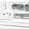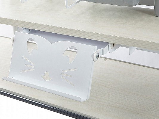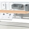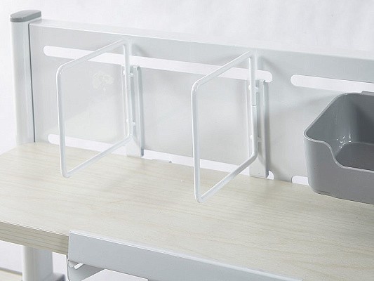 Также, полка дополнена пластиковыми пеналами для канцтоваров. Пеналы можно перемещать по металлической стенке полки.