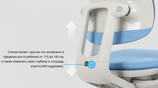 Регулировка глубины и высоты сиденья, высоты и угла наклона подлокотников, регулировка высоты кресла в соответствии с ростом и индивидуальными особенностями пользователя позволяют полностью отрегулировать кресло для максимального комфорта школьника.