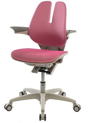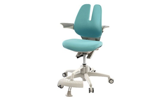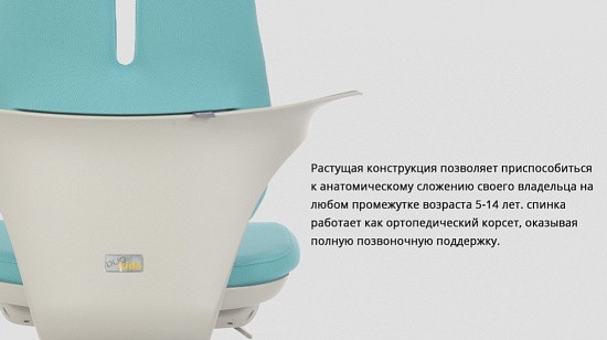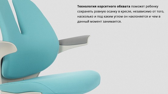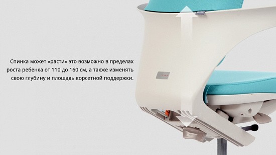 Высокая спинка имеет ярко выраженный ортопедический обхват, помогает пользователю добиться правильного расположения всех отделов позвоночника и поясницы. Она сделана с применением технологии Duoflex, регулируется по росту, в глубину, что позволяет персонализировать ее под особенности телосложения в период интенсивного роста.