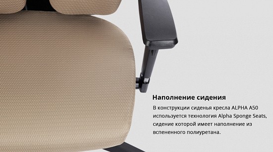 В конструкции сидений кресла DUOREST ALPHA A50H используется технология Alpha Sponge Seats, сидение которой имеет наполнение из вспененного полиуретана.