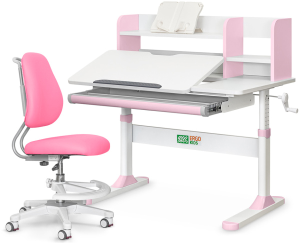 Высота стола регулируется механической ручкой. Это позволяет с легкостью устанавливать парту в соответствии с ростом ребенка.