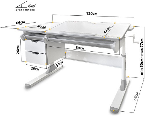 С помощью газлифта подвижная часть столешницы меняет угол наклона до 60 градусов. Столешницу с отрегулированым углом наклона можно использовать для письма, чтения и рисования.
