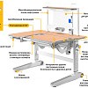 С помощью специальной ручки можно регулировать высоту рабочей части столешницы. Заданная высота устанавливается независимо от высоты всей конструкции стола.