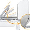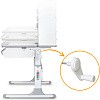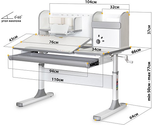 Подвижная часть столешницы меняет свой угол наклона с помощью специального газлифта. Одно плавное нажатие и вы трансформируете рабочую зону для письма и чтения, а благодаря большому углу наклона (до 60 градусов) столешницу можно использовать для рисования, как мольберт. Чтобы ребенок не травмировался, когда самостоятельно будет менять угол наклона, на столешнице есть безопасный зазор.