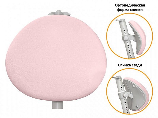 Спинка ортопедической формы плотно прилегает к спине поддерживая правильную осанку, а также создает максимальный комфорт во время занятий.