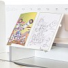 У стола есть вместительная и удобная полка-надстройка. На множестве полочек можно размещать учебники и другую литературу. Задняя стенка надстройки сделана из металла, поэтому вы легко можете использовать ее как место крепления заметок с помощью магнитов. Важным дополнением полки-надстройки является наличие выдвижной металлической подставки для книги.
