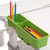 Фиксируясь на краю столешницы, пенал находится всегда под рукой ребёнка, им легко пользоваться, но при этом он не занимает ни сантиметра рабочего пространства. Это одна из тех вещей, к которым очень быстро привыкаешь и взаимодействие с ними производится машинально, без каких-либо сомнений и затруднений. Подчас, именно такие мелкие аксессуары к растущим партам становятся тем самым краеугольным камнем, без которого весь процесс обучения и физического развития буксует и слабо продвигается вперёд. Какими бы чудесными свойствами ни обладали растущие парты, без маленьких и приятных, незаметных и удобных помощников им не обойтись!