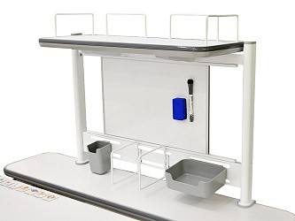 Удобные передвижные контейнеры позволяют разместить в них ручки, фламастеры и другие канцелярские принадлежности.