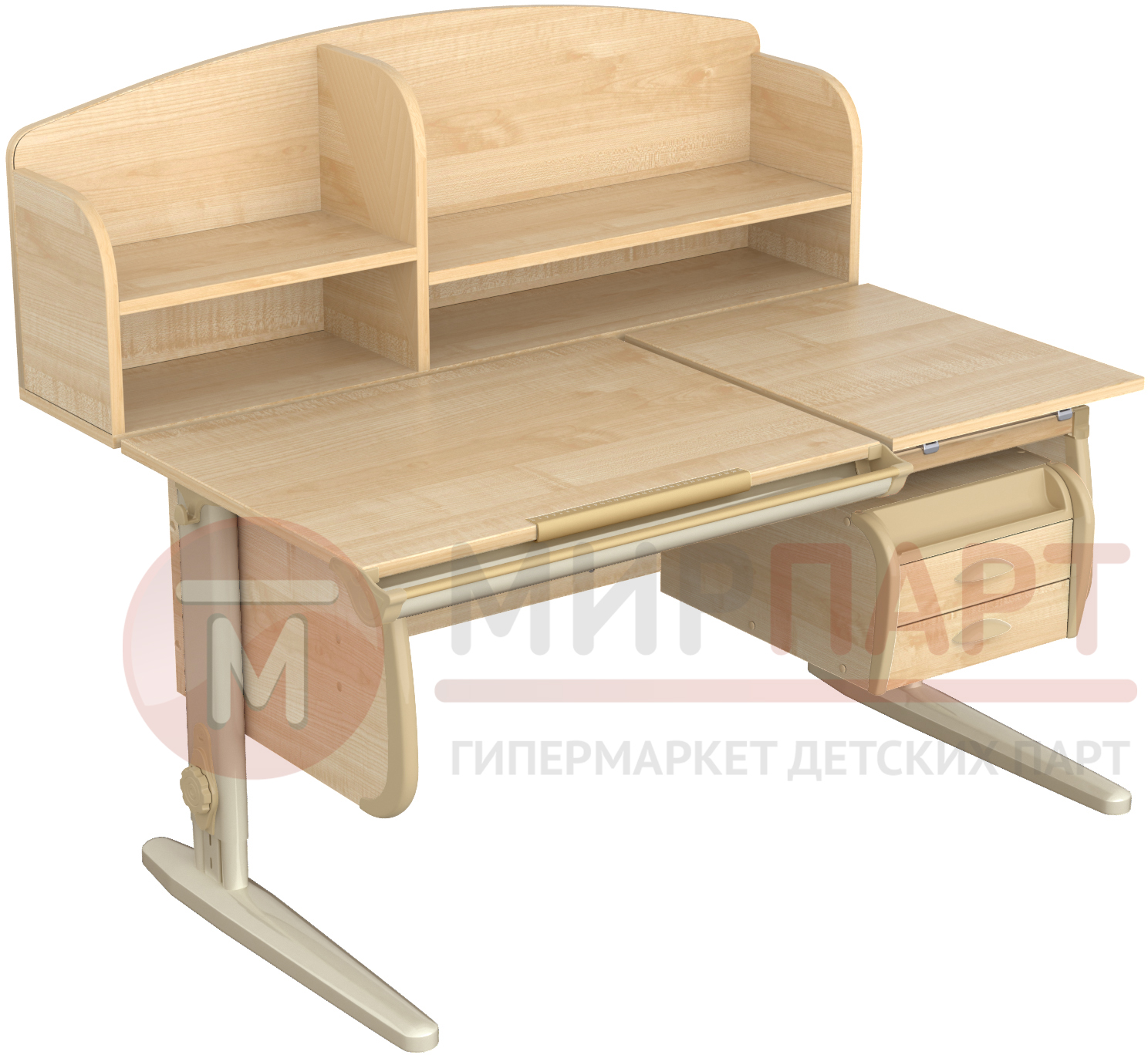 Парта 120 см с раздельной столешницей + тумба + 2 задние надстройки