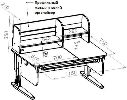 Парта с выдвижным органайзером, тумбой и надстройкой