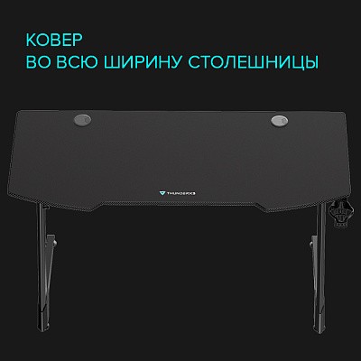 Компьютерный стол ThunderX3 ED5 комплектуется огромным ковром, который занимает всю площадь столешницы и будет отличным помощником во время игр, а также обеспечит мягкую поддержку локтей, предплечий и запястий.