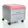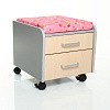 Удобство, компактность, функциональность – два вместительных ящика разместят все, что необходимо в учебном процессе. Углы и кромки скруглены, таким образом, риск случайной травмы сведен к минимуму. Кроме этого, конструкция тумбы включает в себя удобную мягкую подушку, которая превращает её в мягкий пуфик. Когда к ребенку будут приходить гости, тумбочка станет дополнительным сиденьем. Небольшие колесики позволяют легко катать тумбу по комнате, однако, если Ваш непоседа начнет на ней кататься сам, их можно заблокировать в одном положении.
