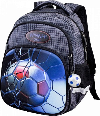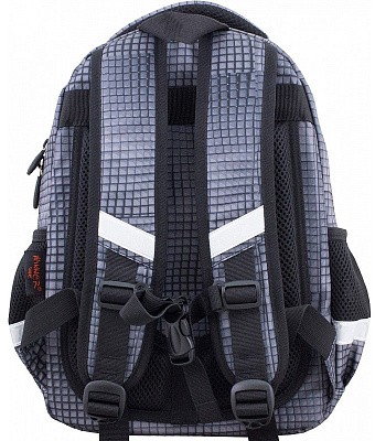 В школьном рюкзаке два основных отделения и карман-органайзер. Основное отделение с 2 двумя разделителями и резинкой для крепления школьных принадлежностей. Второе отделение без наполнения. Спереди вместительный карман на молнии украшенный объёмной 3D картинкой с органайзером для письменных принадлежностей. По бокам карманы-сеточки на резинке.